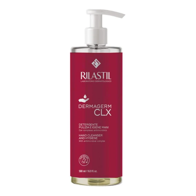 Rilastil dermagerm detergente mani pulisce e igienizza la pelle profondamente contrastando la crescita microbica grazie alla presenza del complesso antimicrobico. la sua formula inoltre, deterge rispettando l'equilibrio della pelle e il pH fisiologico lasciando le mani pulite e morbide.