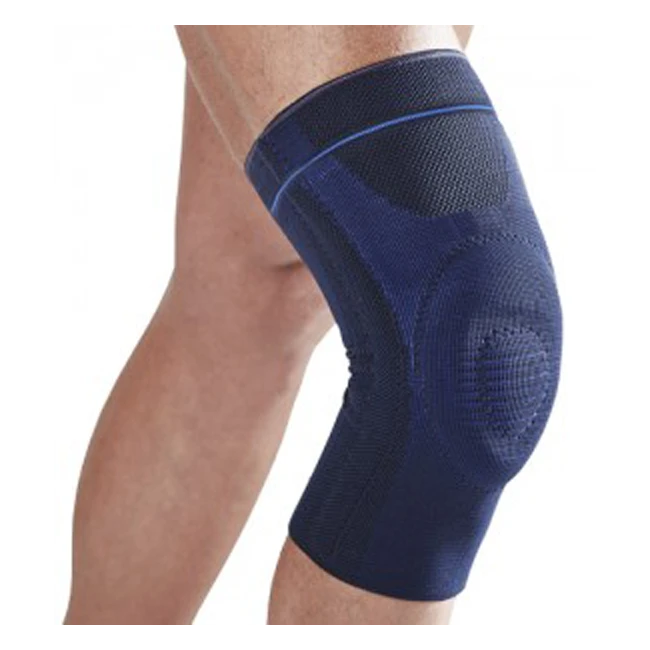 Steccaggio laterale a spirale per la stabilizzazione dell’articolazione, fornisce una compressione di Classe 3 (francese), un effetto propriocettivo e un riallineamento della rotula. Tessuto compressivo realizzato con 3D Motion Technology.