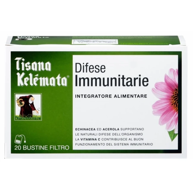 Tisana Kelémata difese immunitarie è un integratore alimentare a base di piante officinali selezionate. Echinacea ed acerola supportano le naturali difese dell'organismo. La formula è arricchita con vitamina C, che contribuisce al buon funzionamento del sistema immunitario. La speciale bustina salva-aroma mantiene intatte tutte le caratteristiche aromatiche delle piante officinali.