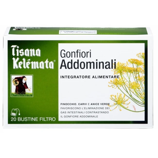 Tisana Kelémata gonfiori addominali è un integratore alimentare a base di piante officinali selezionate. Finocchio, carvi e anice verde favoriscono la regolare motilità gastrointestinale e l'eliminazione dei gas, contrastando il gonfiore addominale.