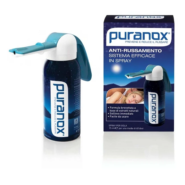 PuraNox non deve essere usato dai bambini al di sotto dei 12 anni di età. Non si conoscono interazioni con altri farmaci. In caso di utilizzo di altri farmaci consultare il vostro medico curante. Rilassanti muscolari come sonniferi o alcool possono influenzare l’efficacia di PuraNox. Non spruzzare negli occhi. Tenere fuori dalla portata dei bambini. Non fumare.