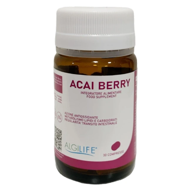 Integratore alimentare a base di acai berry. L’acai berry ha azione antiossidante, inoltre espleta importanti azioni nel favorire il metabolismo dei lipidi e dei carboidrati e nel coadiuvare la regolarità del transito intestinale.