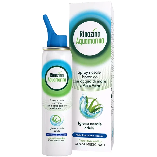Spray nasale isotonico per adulti con acqua di mare, Aloe vera nota per le sue proprietà emollienti e idratanti e senza medicinali. Lava via le impurità, deterge le cavità nasali, idrata e lenisce le mucose irritate.