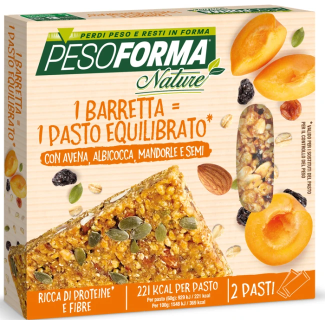 La nuova barretta Pesoforma, a base di ingredienti naturali, è ideale come pasto equilibrato. Ricca di proteine, vitamine, minerali e fibre consente di assumere tutti i macro e micronutrienti nelle giuste percentuali.