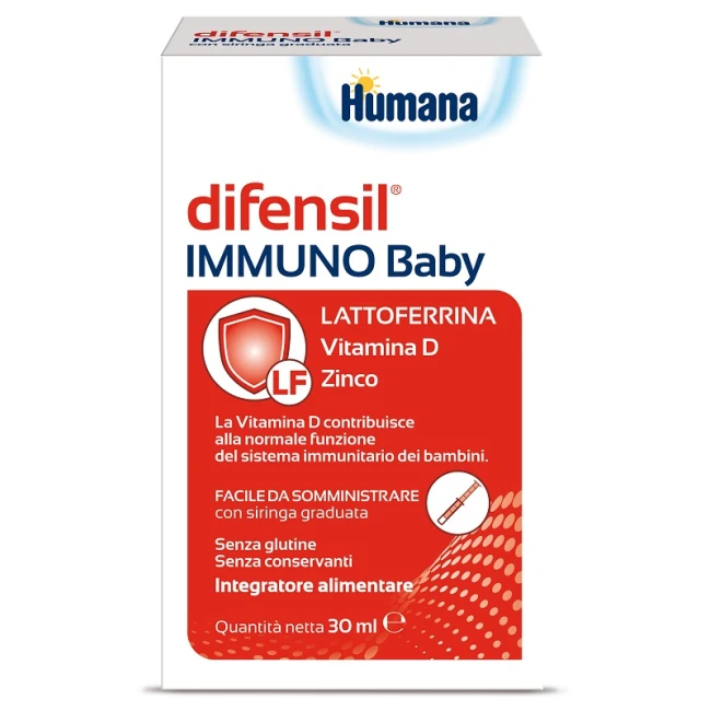Integratore alimentare a base di lattoferrina, vitamina D e zinco, indicato in casi di aumentato fabbisogno o diminuito apporto con la dieta di tali nutrienti. La vitamina D contribuisce alla normale funzione del sistema immunitario dei bambini.