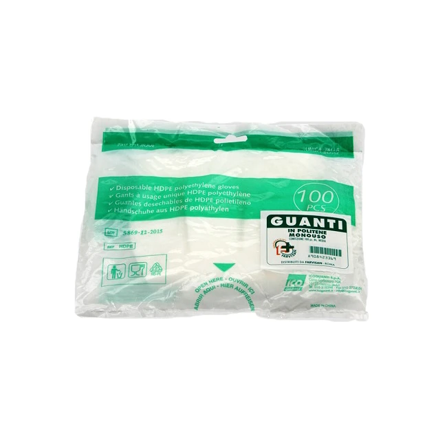 Guanti monouso in polietilene.