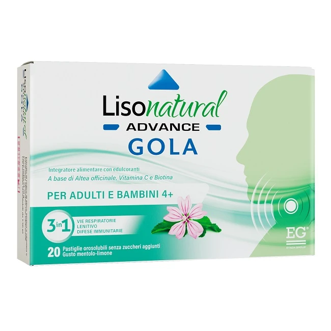 Lisonatural Advance GOLA contiene estratto naturale di radice di Altea, biotina e vitamina C per un’azione lenitiva su gola e faringe.