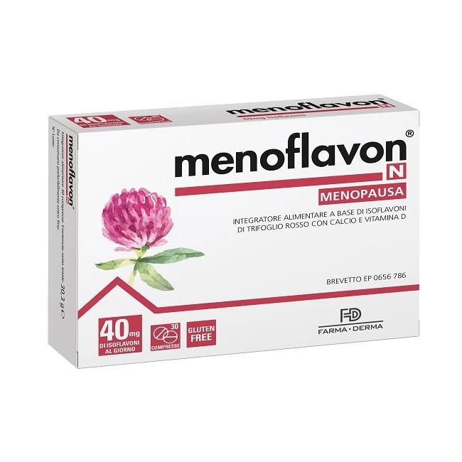 Integratore alimentare a base di isoflavoni ricavati dall’estratto secco titolato e standardizzato di trifoglio rosso che è utile per contrastare i disturbi della menopausa.