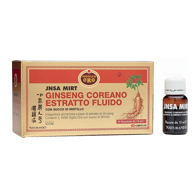 Integratore alimentare che associa l’estratto di ginseng coreano IL HWA con il succo concentrato di mirtillo. Il ginseng è noto per il suo effetto tonico-adattogeno. Il mirtillo nero è noto per le sue proprietà antiossidanti.