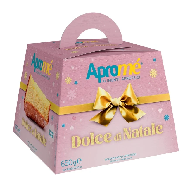 Dolce di natale aproteico. Alimento a fini medici speciali. Indicato per la gestione dietetica dell'Insufficienza Renale Cronica (IRC). Indicato per la gestione dietetica della Fenilchetonuria. Indicato per la gestione dietetica della malattia di Parkinson (in terapia con Levodopa). Il prodotto, per la sua composizione, risulta idoneo per tutte e tre le categorie di pazienti. In particolare: il prodotto è stato appositamente formulato con ingredienti a ridotto tenore di proteine, sodio, fosforo e potassio per soddisfare le esigenze nutrizionali dei pazienti affetti da Insufficienza Renale Cronica; la composizione del prodotto presenta, in aggiunta, un ridotto apporto di fenilalanina per la gestione dietetica dei soggetti in condizioni di Fenilchetonuria. Nei soggetti affetti da aminoacidopatie deve essere valutata l'assunzione aggiuntiva di sodio, potassio e fosforo. Inoltre il prodotto, grazie ad un tenore limitato di proteine, è adatto anche per la gestione dietetica di pazienti affetti dal Morbo di Parkinson in cura con levodopa, in quanto non interferisce nell'assorbimento di questo aminoacido. Per il paziente in terapia con levodopa deve essere valutato il grado di eventuale disfagia e le eventuali problematiche di malnutrizione per difetto che possono insorgere in condizioni di restrizione proteica.
