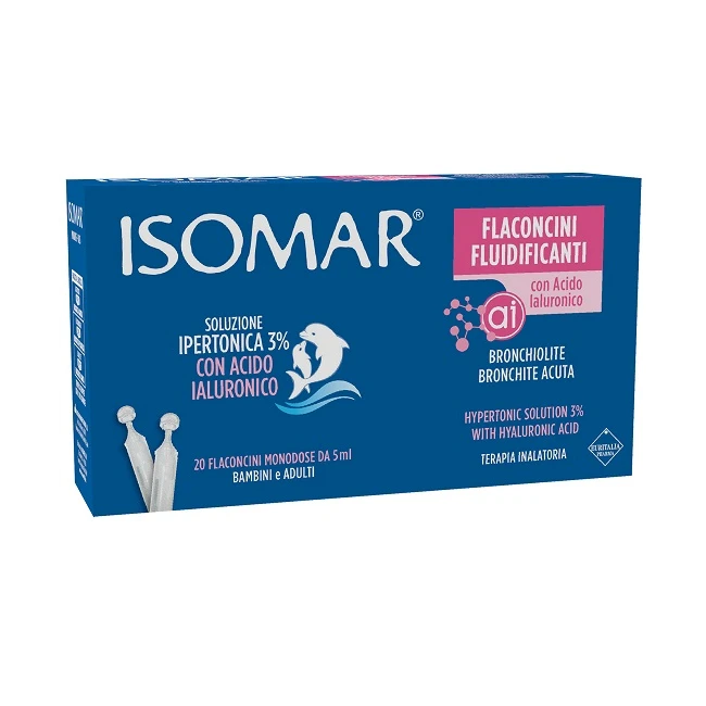 Isomar Flaconcini Fluidificanti con acido ialuronico, nella terapia di inalazione è particolarmente indicata per i pazienti che soffrono di bronchiolite, bronchite acuta, fibrosi cistica e broncopneumopatia cronica ostruttiva (BPCO). Può inoltre essere utilizzata come veicolo di altri prodotti farmaceutici da inalazione.