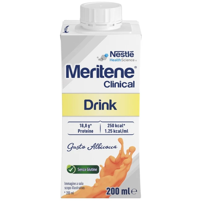 Alimento a fini medici speciali. Nutrizionalmente completo. Iperproteico. MERITENE Clinical Drink è un alimento a fini medici speciali, caratterizzato da un elevato contenuto proteico e di carboidrati. Per questo motivo è indicato per la gestione dietetica della malnutrizione calorico-proteica, anche di pazienti sarcopenici.