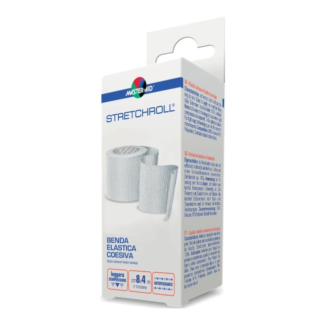 Dispositivo medico CE. Benda elastica autobloccante: aderisce su se stessa ma non alla pelle né ai peli. Fornisce un leggero sostegno e ha una estensibilità in lunghezza del 100% circa. È altamente conformabile e offre un distacco atraumatico. Non è candeggiata, ben tollerata, permette una elevata traspirazione. Contiene lattice di gomma naturale.Indicata per il fissaggio di medicazioni o stecche ortopediche ed il trattamento di distorsioni. Adatta alla protezione della pelle nei bendaggi adesivi.