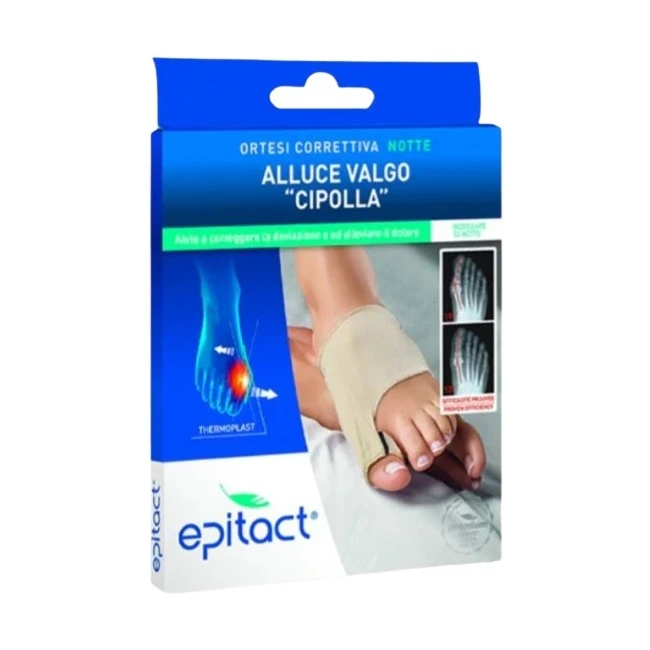 L'indossare quotidianamente l'ortesi correttiva notte EPITACT aiuta a correggere la deformazione e a limitare l'evoluzione dell'alluce valgo. Contribuisce a dare sollievo ai dolori articolari notturni ed elimina i dolori da contatto.