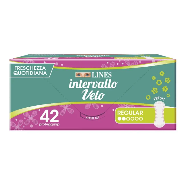 Scoprire la gamma Lines Intervallo Velo, i proteggislip Lines creati per donare una straordinaria sensazione di freschezza durante tutto il giorno, così confortevoli da non sentirli addosso. L'incredibile flessibilità di Lines Intervallo Velo garantisce il massimo del comfort in un solo millimetro di spessore. Grazie alle fibre superassorbenti il prodotto assicura, inoltre, la protezione di cui c'è bisogno.