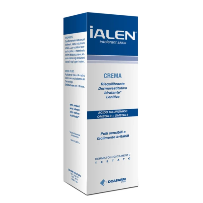 Ialen Crema è specificamente formulata per pelli intolleranti, reattive e facilmente irritabili. L'uso quotidiano favorisce il ripristino e il mantenimento del film idrolipidico cutaneo, lenisce le irritazioni e gli arrossamenti causati dagli agenti esterni.