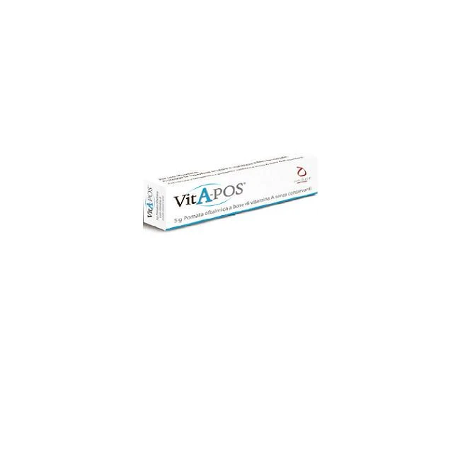 Dispositivo Medico CE, classe IIa, a base di vitamina A. Pomata oftalmica sterile a base di vitamina A senza conservanti. Grazie alla sua particolare composizione si applica facilmente sulla superficie oculare. VitA-POS protegge la superficie oculare e stabilizza il film lacrimale. La vitamina A in essa contenuta è un costituente naturale del film lacrimale che favorisce una buona tollerabilità della pomata oftalmica e assicura la completa miscelazione con le lacrime. Allevia la sensazione di bruciore, secchezza o stanchezza oculare. Facilita infine lo scorrimento delle palpebre sulla superficie corneale e congiuntivale.