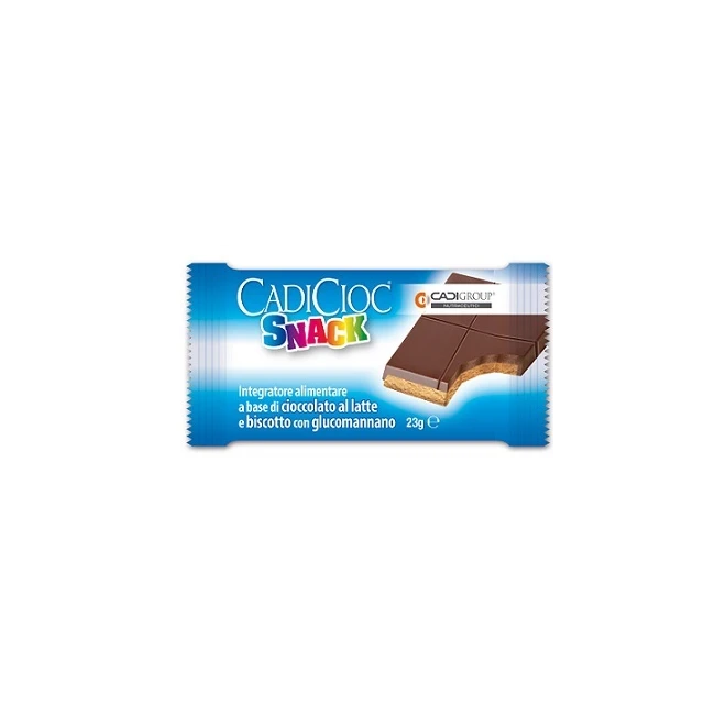 Cadicioc Snack associato ad un bel bicchiere di acqua, fornisce il giusto apporto di fibra e può quindi essere utile per la gestione di sovrappeso, diabete e stipsi.