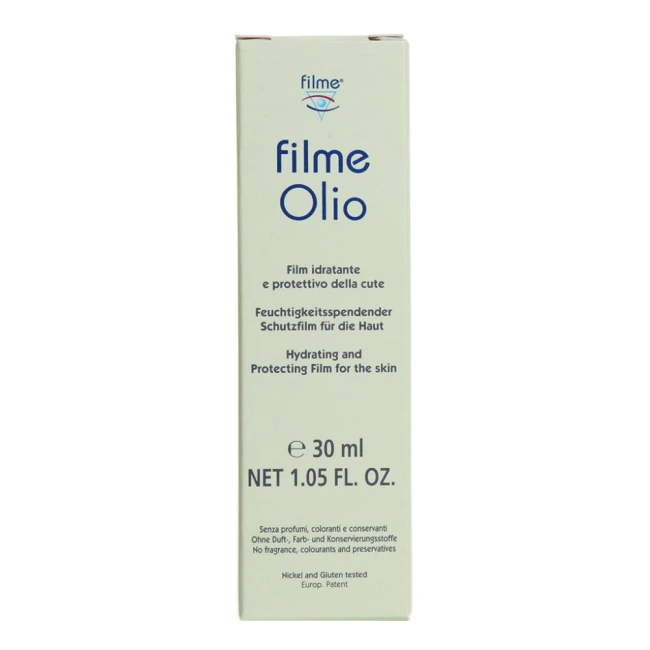 Film Olio è composto da Tocoferol acetato (vitamina E) che forma un film protettivo, ristabilendo la idratazione normale della pelle e della mucosa genitale e anale nei soggetti che presentano secchezza, irritazione, pizzicore, prurito, arrossamento derivanti da fattori esterni come stress fisici, chimici, ambientali o attraverso interventi chirurgici o per medicazioni topiche. Favorisce i processi trofici fisiologici e riparatori della pelle e della mucosa genitale e anale. Forma una barriera protettiva a livello della mucosa anale che può contribuire a ridurre i sintomi causati da ragadi o emorroidi esterne lievi. Contribuisce alla riduzione del biofilm mantenendo in buono stato il microbiota normale della pelle e della mucosa genitale e anale.